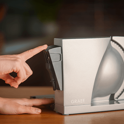 Purpose‑built for domestic kitchens, MYtiny combines professional slicing technology with a compact, elegant footprint that fits comfortably on the bench or stores away easily when not in use.