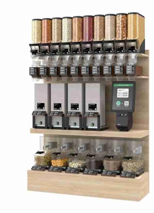 - Real-time weight and pricing display: no surprises at checkout as customers see weight and price in real-time as they dispense/scoop their chosen product