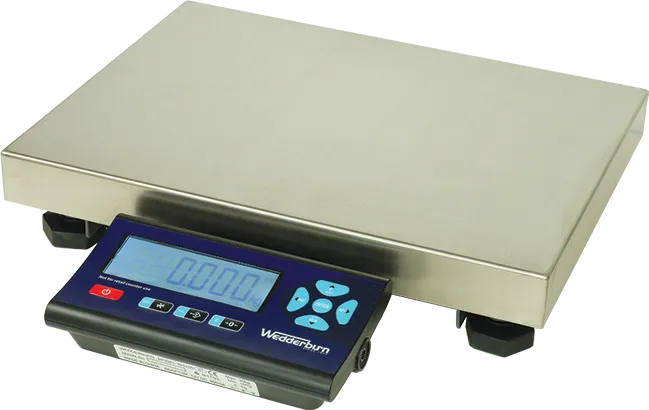Compact portable bench scales with stainless steel platter and large, easy to read display.